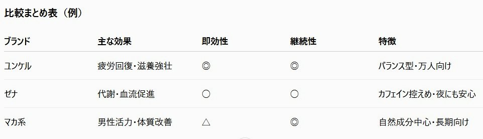 信頼できる国内ブランド(ユンケル・ゼナ・マカEXなど)を選べば、品質面でも安心です。