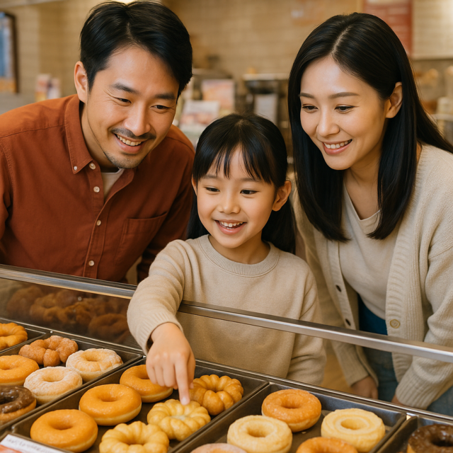 さらに、学校帰りや仕事終わりの時間帯は、ドーナツを買うお客様で行列ができ、商品を選ぶ余裕もなくなってしまうこともあります。